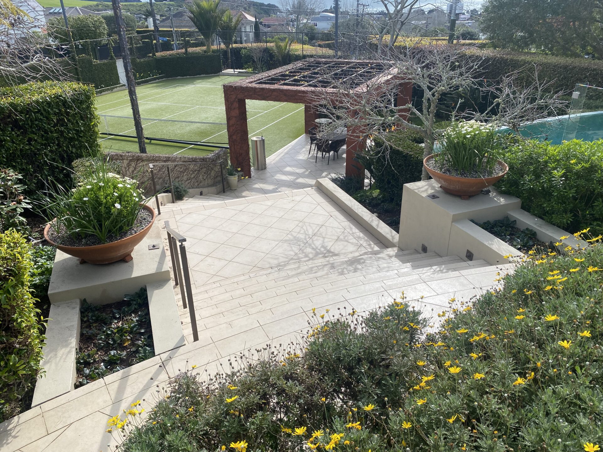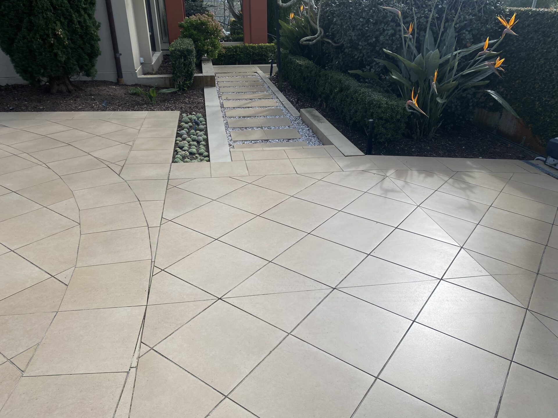SlipSafe was asked to improve safety across exterior tiled areas of this impressive residential property while maintaining the clean, high-end aesthetic of the home. A combination of our Transparent Anti-Slip Coating and TerraGrip treatment was used to address different surface conditions and exposure to weather. This tailored approach delivered reliable slip resistance in key walkways and transition areas, without altering the natural look or feel of the tiles. The result is a safer, low-maintenance outdoor space that performs in wet conditions while preserving the architectural finish of the property.